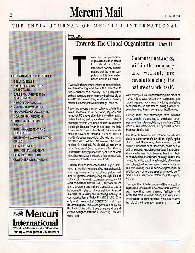Mercuri Mail was started in 1989 Feb with the single purpose of sharing knowledge with our customers and for that matter anyone who is willing and keen. Over the years it has evolved and the purpose has only become stronger in the way the Mail was designed and the contents included.